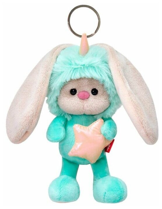 Миниатюрная версия игрушки Зайка Ми воплощена в виде брелка с креплением (кольцо). На малыше невероятно милый костюмчик единорожки.