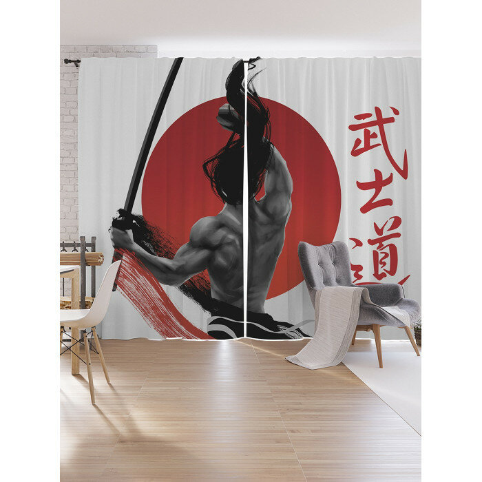 Шторы под лён JoyArty "Самурай на закате" серия Oxford DeLux 340х265 см Шторы под лён Самурай на закате серия Oxford DeLux 340х265 см
