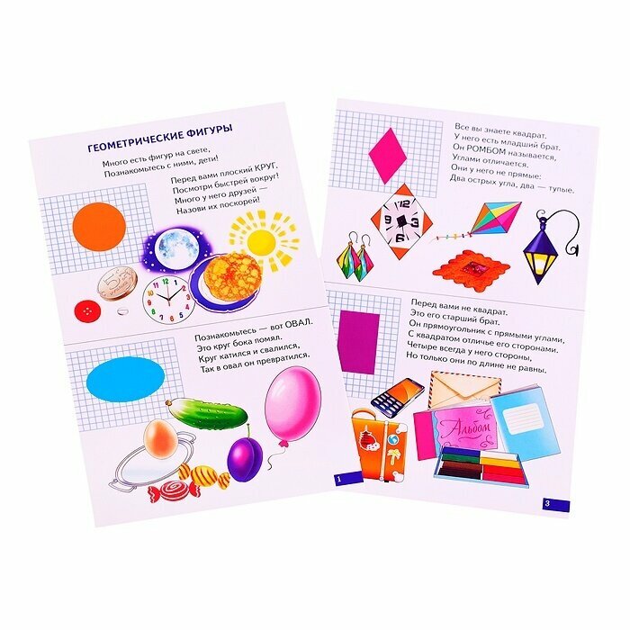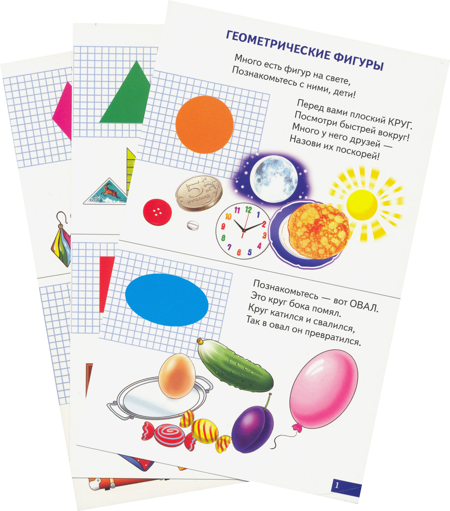 Какими же удобными стали помогающие учёбе материалы! Такое всё яркое, красочное, непринуждённое! В этом наборе предоставлены множественные карточки с разными, похожими по форме предметами! И про каждую фигуру и цвета приятные, коротенькие стишки! Все карточки пронумерованы, поэтому легко будет понять что, что-то отсутствует. Поиск недостающей карточки, заставит параллельно навести дома порядок