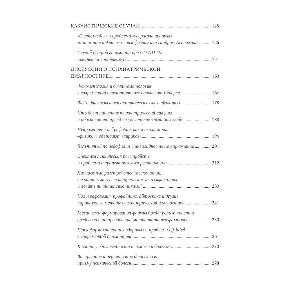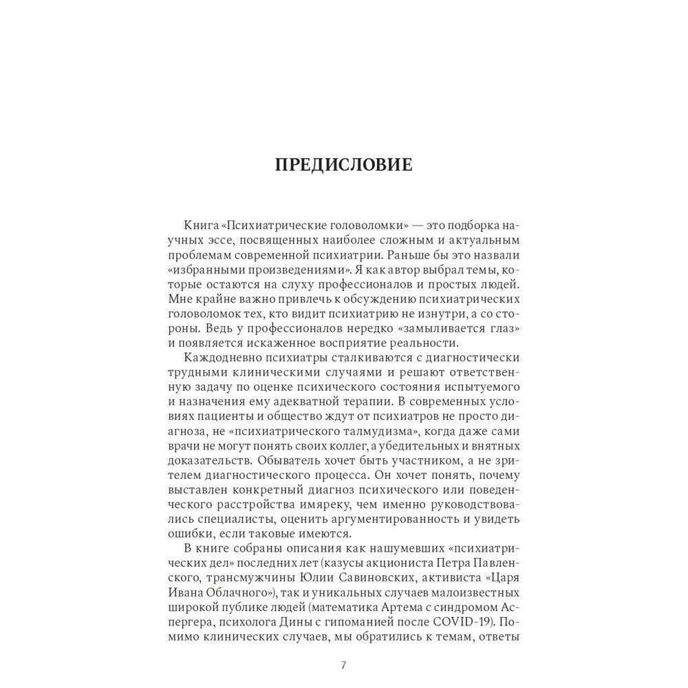 В книге автор приводит множество сложных клинических случаев, размышляет над неоднозначными психиатрическими темами и привлекает заинтересованного читателя вместе с ним поломать голову над их решением. Поднимаемые автором темы выходят за рамки узкопрофессиональных и направлены на инициирование активной общественной дискуссии.