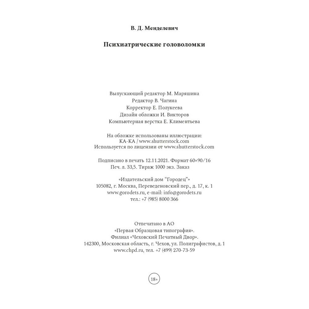 Психиатрические головоломки (Менделевич Владимир Давыдович); Городец, 2022