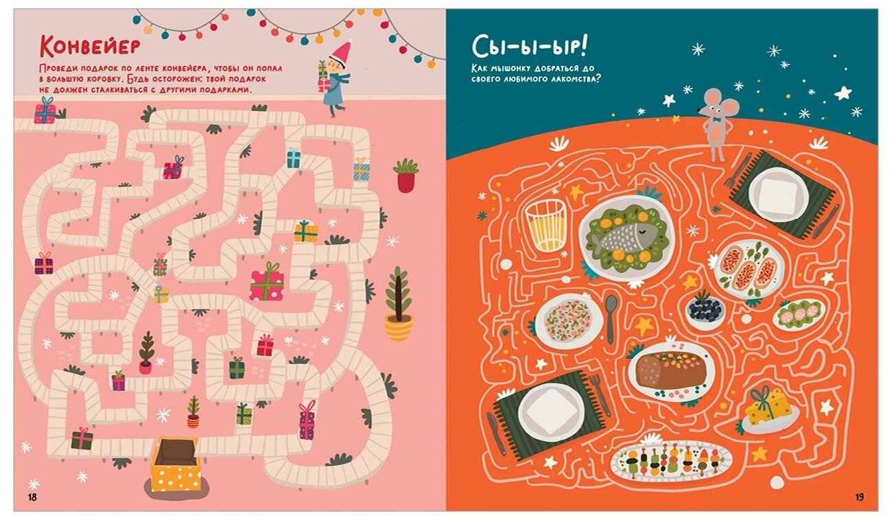 Книга «Лабиринты. Морозные ходилки и бродилки» не только создаст новогоднее настроение, но и поможет развить мелкую моторику, сообразительность и фантазию.