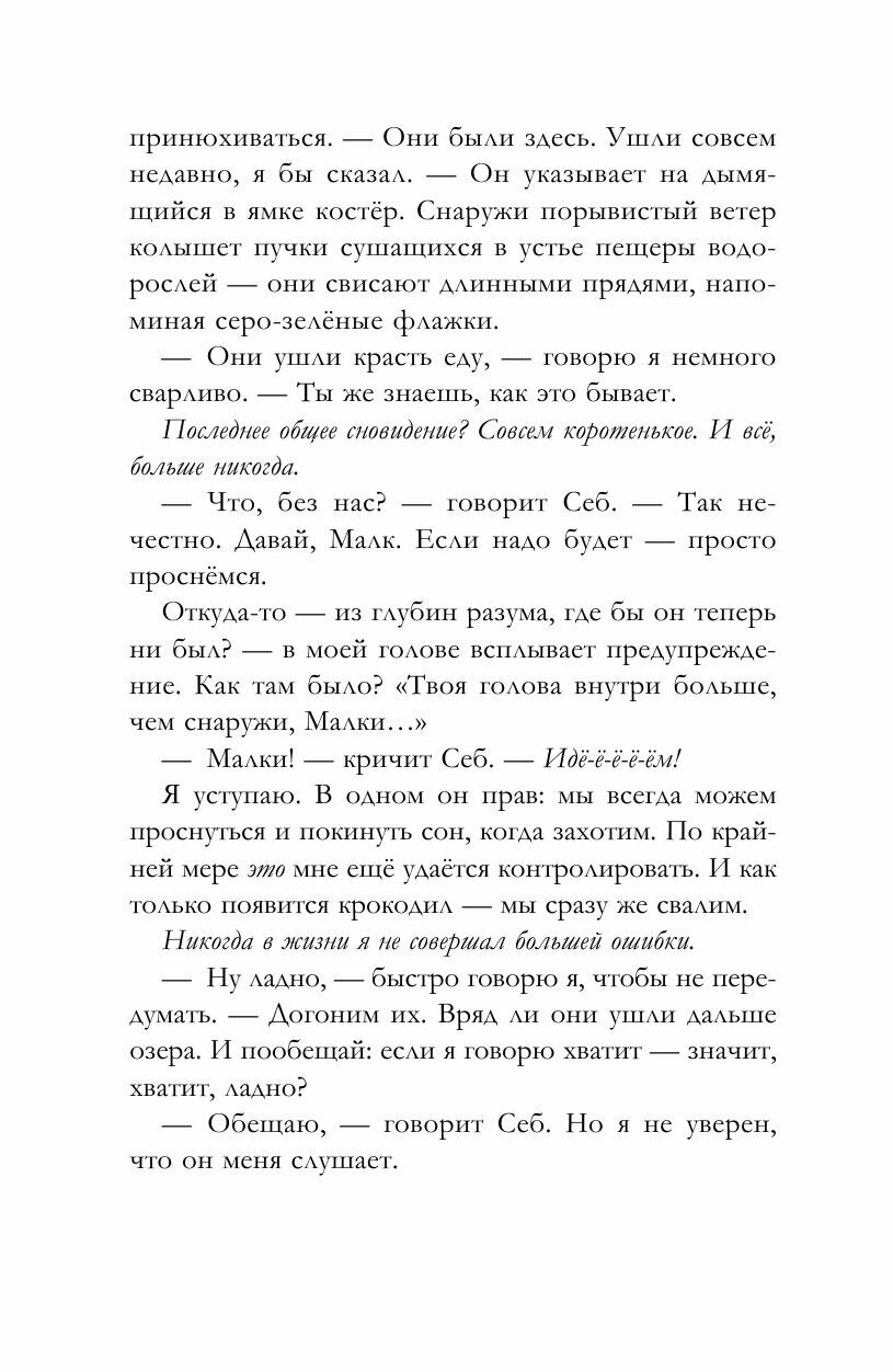 То, что начинается, как интересное и веселое приключение. очень скоро обернется смертельно опасной ситуацией, а Малки придется спасать Себа из мира снов. Попутно постигая в ускоренном темпе многие вещи, знанием которых и многие взрослые похвастать не могут: понимать опасность погружения в измененные состояния сознания, отличать подлинную дружбу от мнимой, иметь достаточно сил и твердости, чтобы отказаться от фальшивой и ценить настоящую.