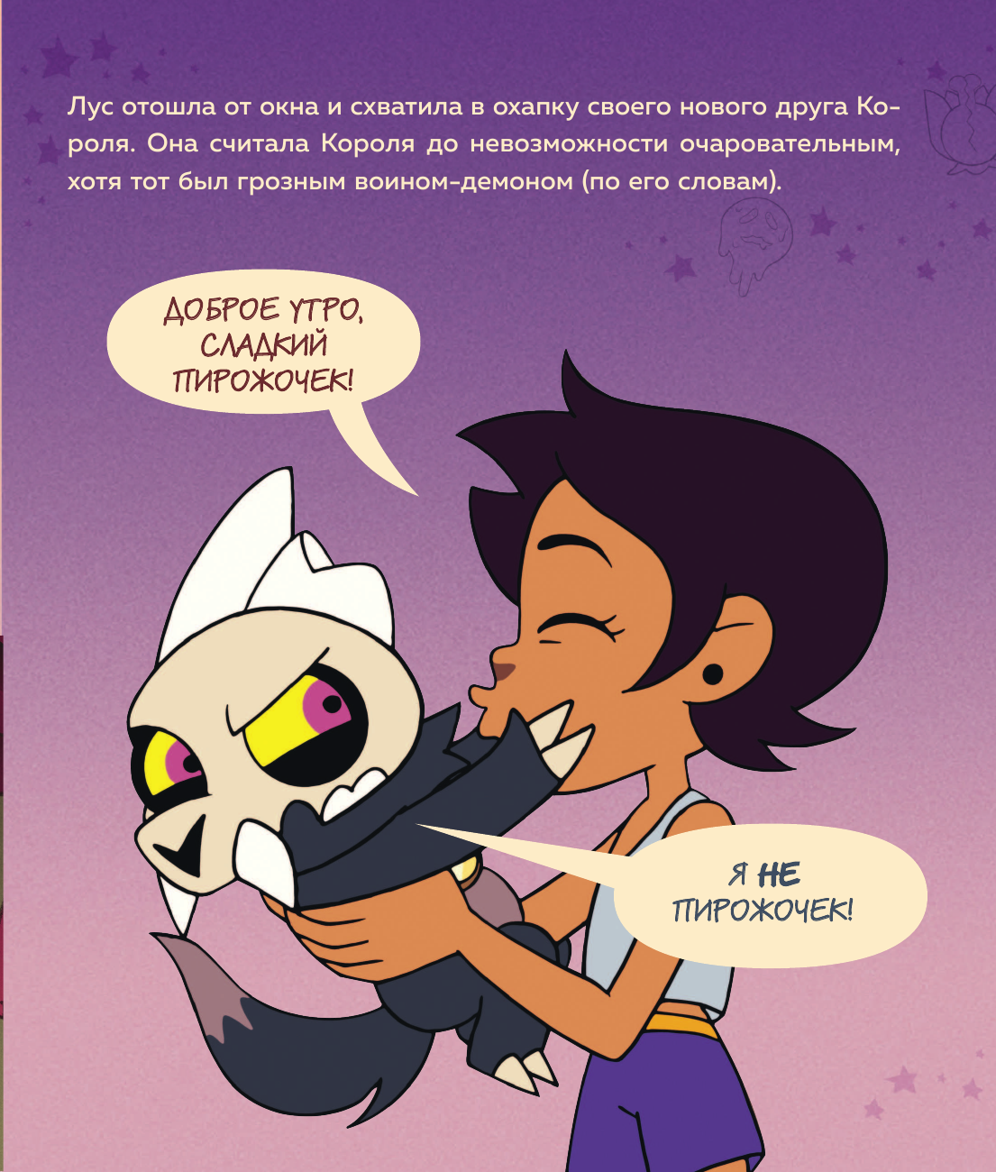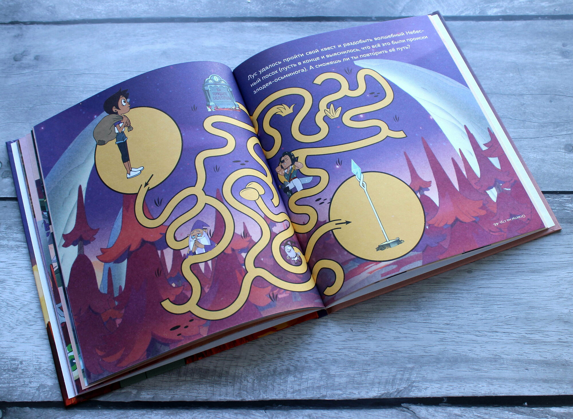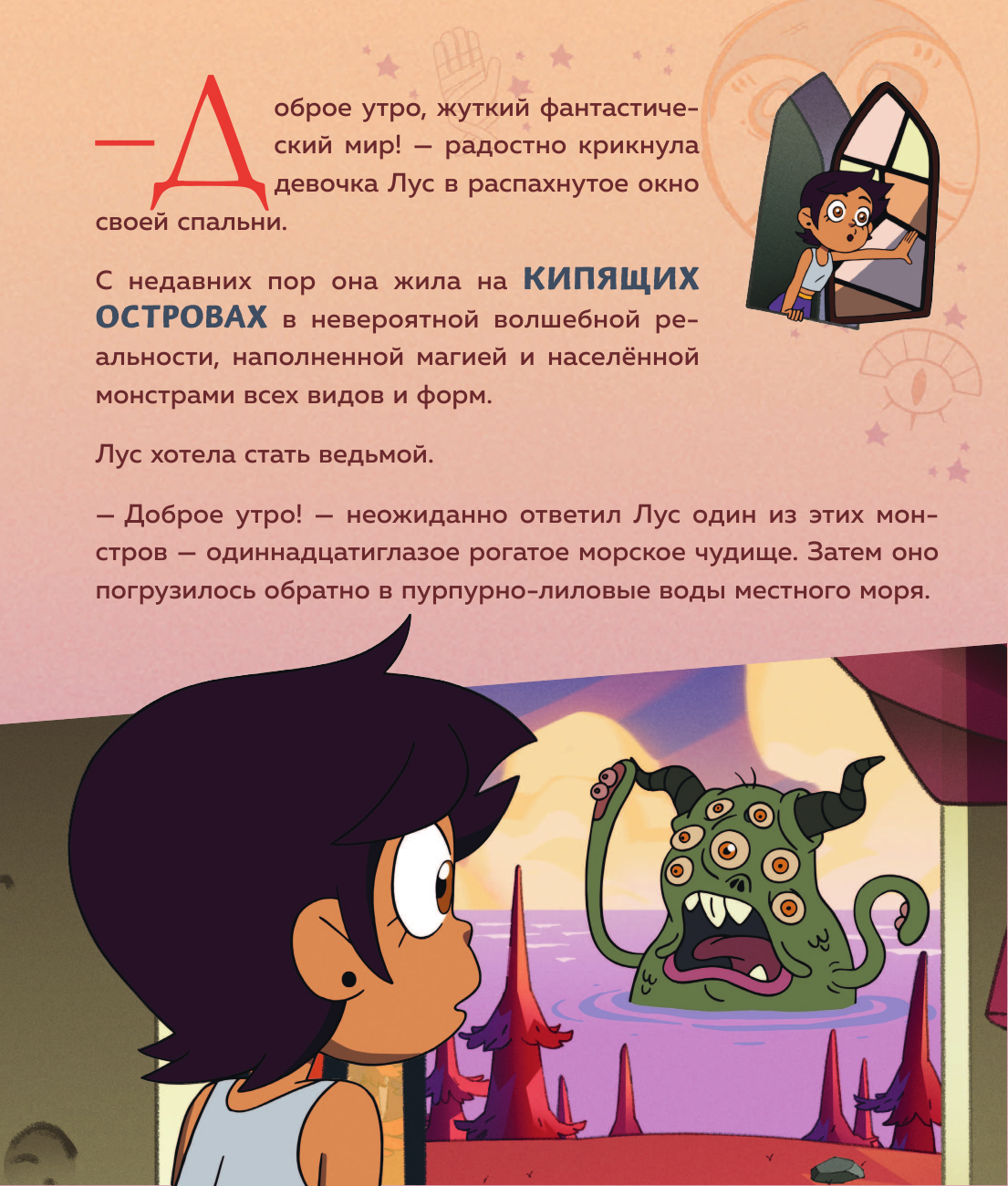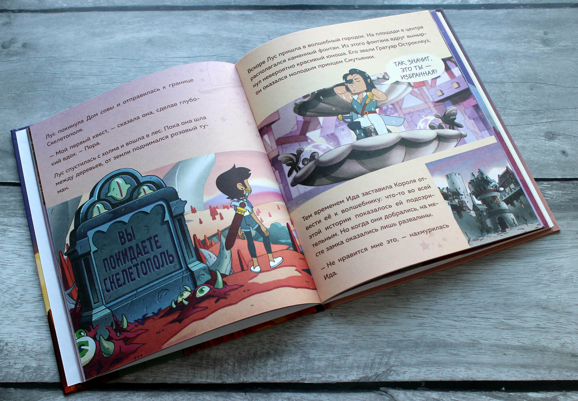 Дети любят канал Дисней. Особую симпатию заслужил мультсериал Дом совы. Герои добрые и смешные. Сюжет хорошо выстроен. Весь мир продуман и красочно прорисован. Каждая страница в книге это подтверждает. Здесь вы не найдёте сильной драмы, это приятная сказка- приключение. Подходит, чтобы рассказать детям как необходимо выстраивать отношения, ценить дружбу и любовь.