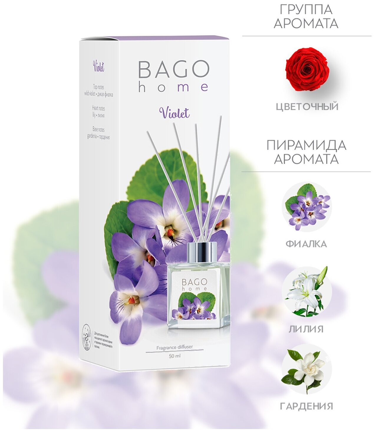 Ароматический мини-диффузор Bago home Фиалка 50мл Хоум Сентс Лимитед