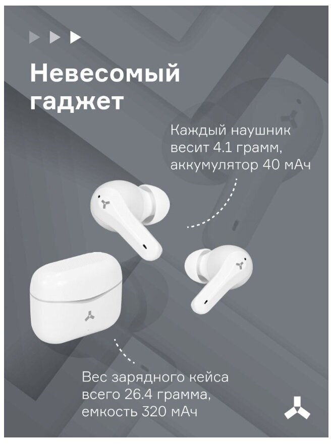 | Вес | каждый наушник 4.1 г, зарядный чехол 26.4 г |