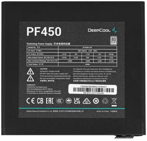 Блок питания ATX Deepcool 450W PWM 120mm fan 80 PLUS Active PFC PF450