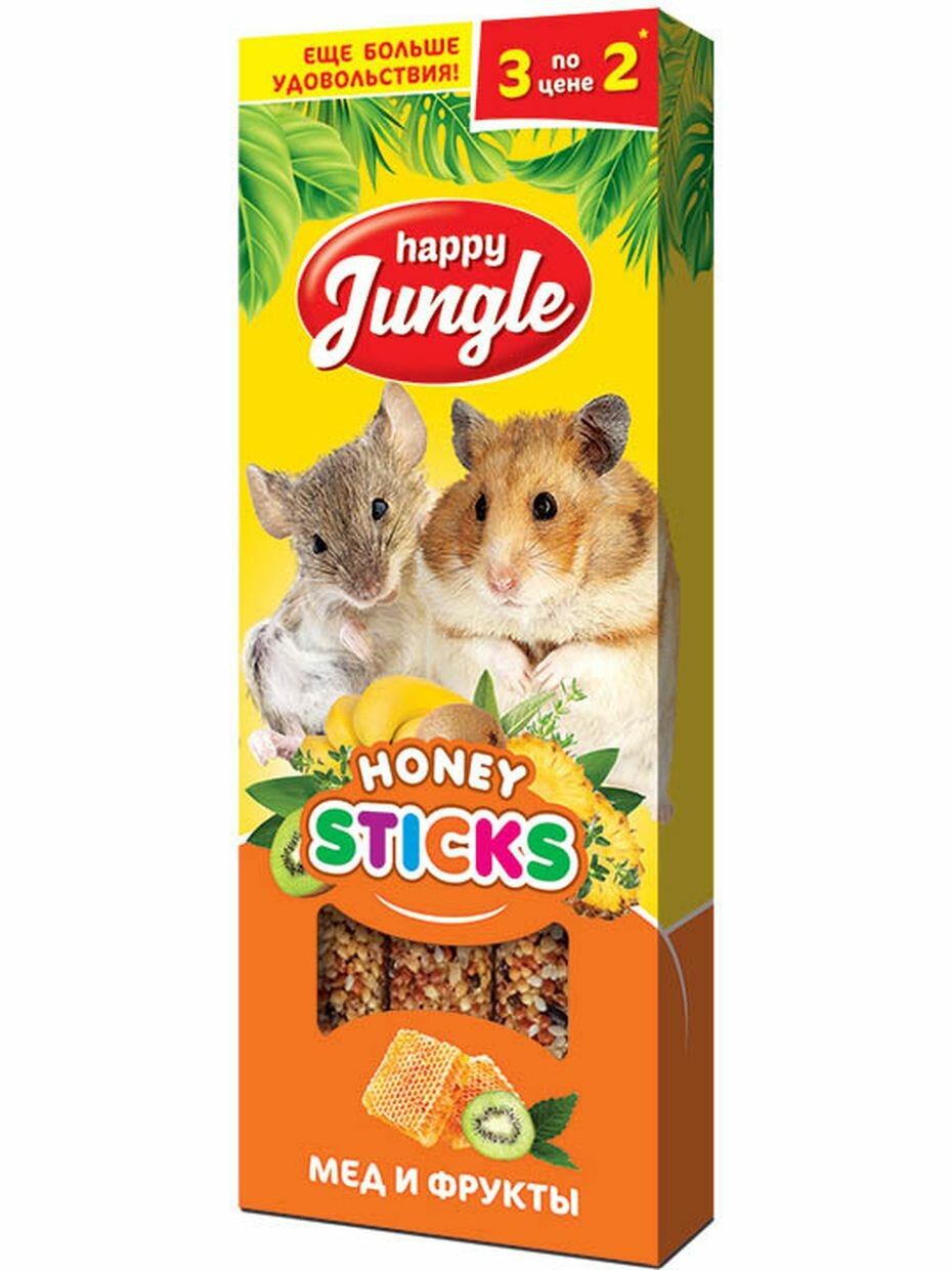 Сервис сравнения цен СкидкаГИД предлагает сравнить цены на товар «Палочки для мелких грызунов мед+фрукты 3шт. Happy Jungle»