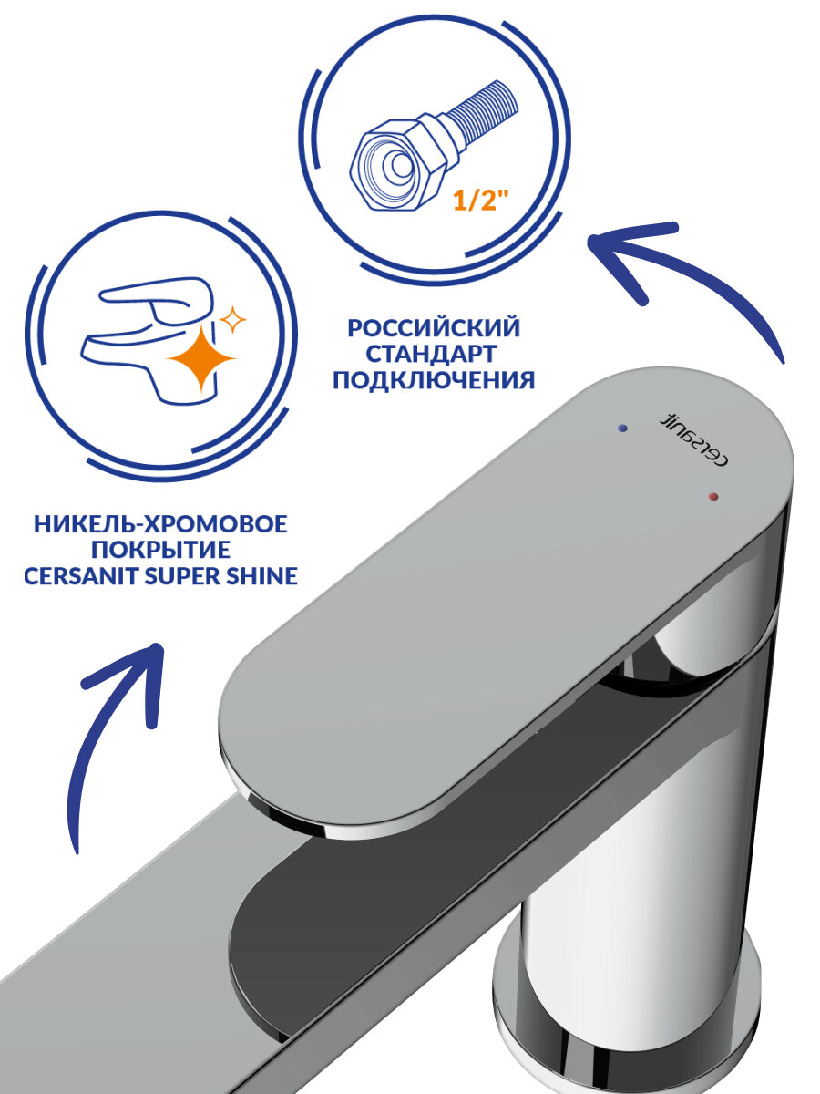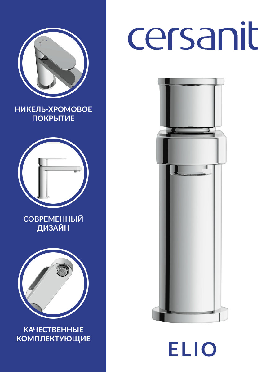 Смеситель для раковины Elio — это долговечное и красивое оборудование со смелым дизайном. Оборудование можно использовать для любых интерьерных решений в современном стиле. Сияющее никель-хромовое покрытие Cersanit Super Shine проходит испытания в нейтрально-солевой среде, что обеспечивает устойчивый блеск долгие годы. Цельнолитой корпус из латуни с высоким содержанием меди защищён от коррозии и не боится перепада давления воды в трубах. Благодаря этому на смесители действует одна из самых длительных гарантий на рынке — 12-лет.Керамический картридж, рассчитанный на 500 тыс. циклов открывания и закрывания, будет служить минимум 5 лет по гарантии. Благодаря нему происходит точное смешивание воды. За никель-хромовым покрытием Cersanit Super Shine просто ухаживать. Его стойкий блеск доказан тестами в нейтральной солевой среде. Смеситель оснащен аэратором Eco Neoperl, который подает 6 литров в минуту и позволяет экономить до 50% воды. В Cersanit тщательно следят за качеством продукции: проверку проходят сырьё и вся готовая продукция. Тестовые испытания компании подтверждают функциональность рабочих элементов и герметичность в закрытом состоянии. Весь модельный ряд смесителей Cersanit соответствует ГОСТ 19681-2016.