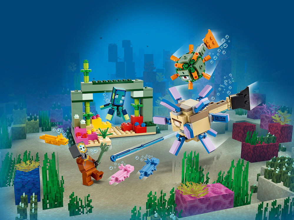 Подводное приключение — набор «Битва со стражем» LEGO Minecraft (21180) отправляет игроков в возрасте от 8 лет в творческую экспедицию на дне океана, где их ждет множество персонажей и функций из хитовой игры.