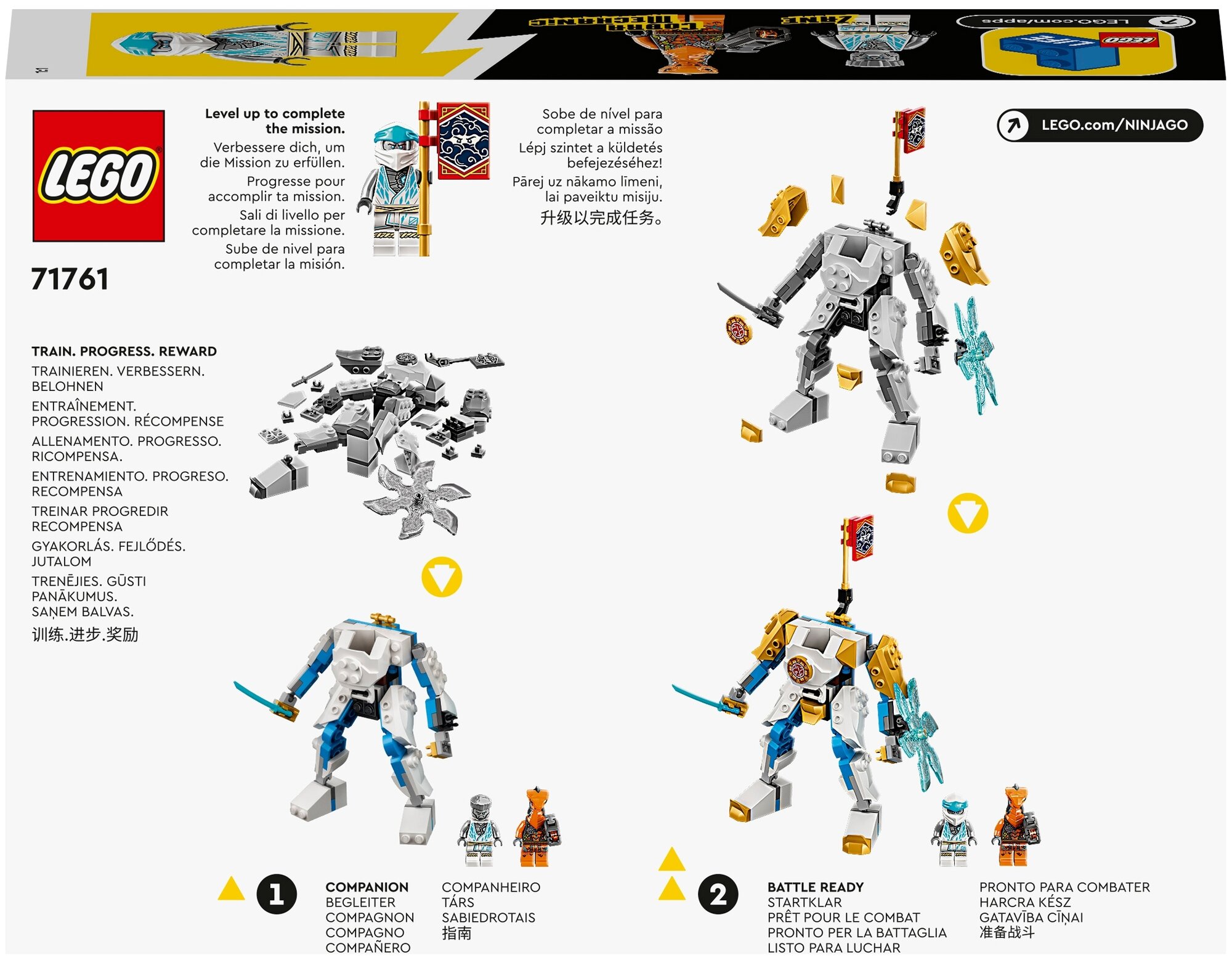 - Объединитесь с Зейном и его впечатляющим могучим роботом ЭВО, чтобы сразиться с опасной Коброй-механиком в серии захватывающих поединков. Берегитесь змеиного бластера! Улучшите броню Зейна и робота, залезайте в кабину и дайте врагу отпор с помощью меча и крутой вращающейся звёздочки. За выполнение задания вы получите в награду коллекционное знамя скрытности.
