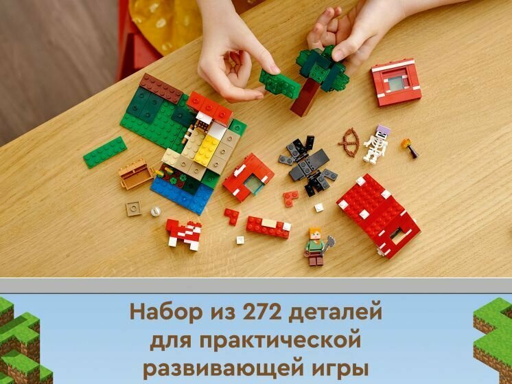 Приключения Minecraft — возможности творческой игры не знают границ, как внутри, так и снаружи увлекательного грибного дома LEGO Minecraft (21179).