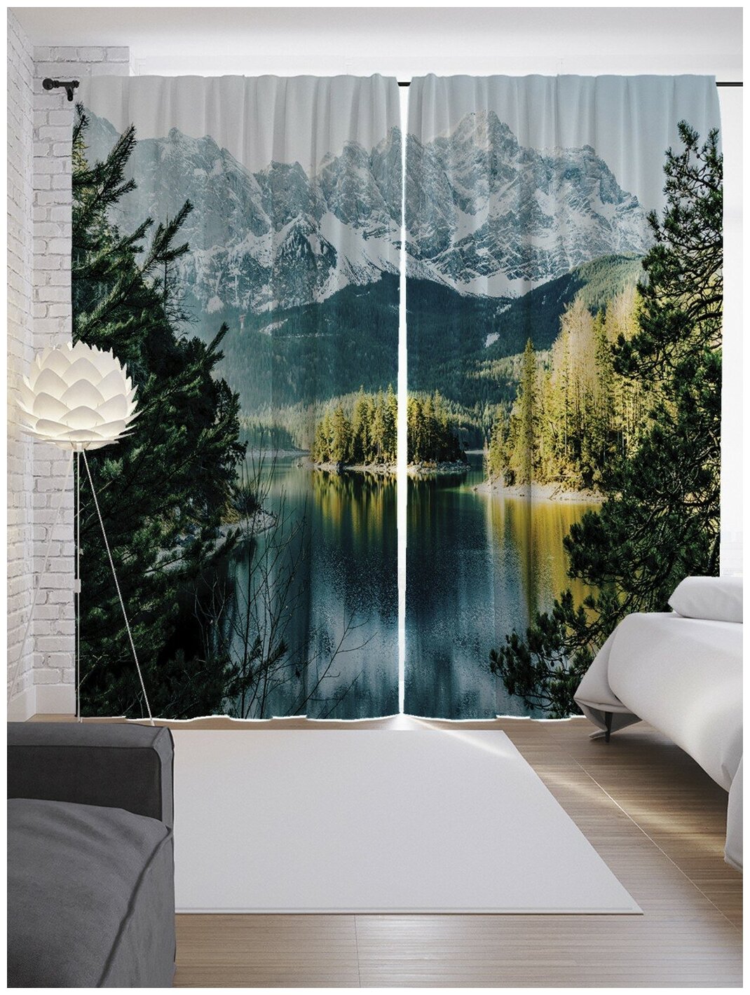 Шторы JoyArty с фотопечатью "За рекой горы" из сатена 290х265 см Шторы с фотопечатью За рекой горы из сатена 290х265 см