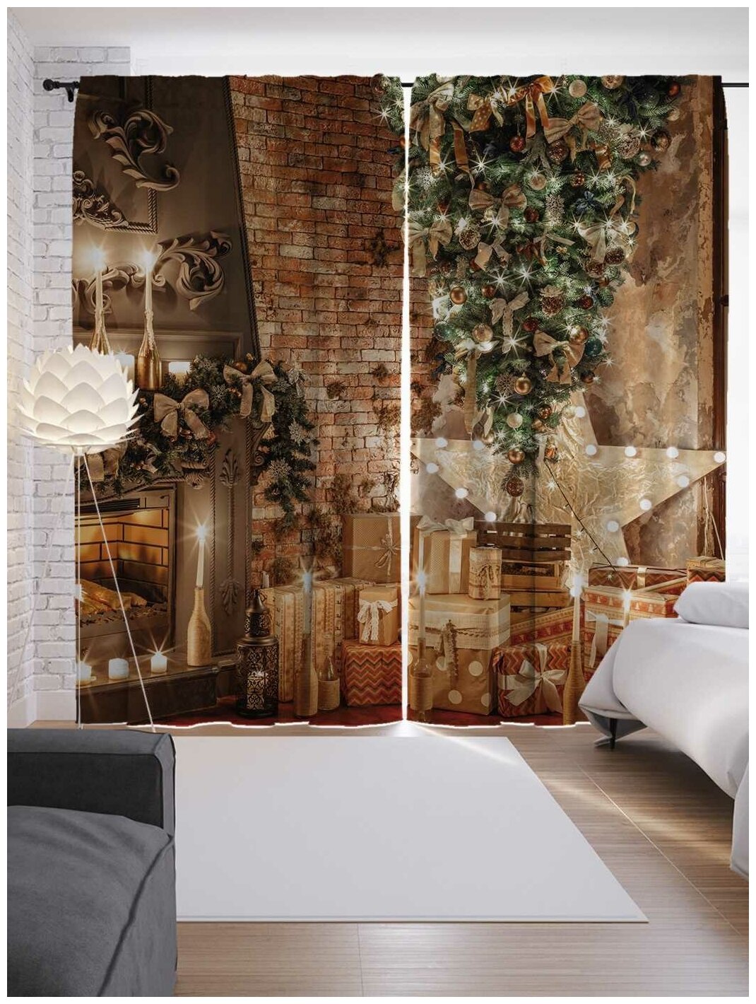 Шторы с фотопечатью "Подарки для семьи" из сатена 290х265 см JoyArty Шторы с фотопечатью Подарки для семьи из сатена 290х265 см