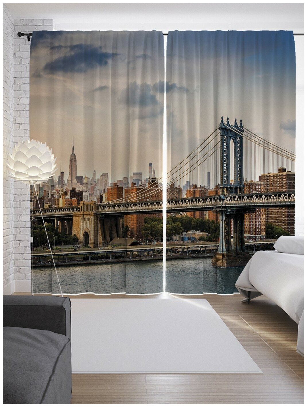 Шторы JoyArty с фотопечатью "Бруклинский мост" из сатена 290х265 см Шторы с фотопечатью Бруклинский мост из сатена 290х265 см