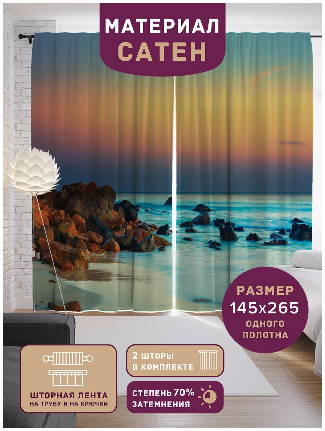 Сервис сравнения цен СкидкаГИД предлагает сравнить цены на товар «Шторы JoyArty с фотопечатью "Береговое завершение" из сатена 290х265 см Шторы с фотопечатью Береговое завершение из сатена 290х265 см»