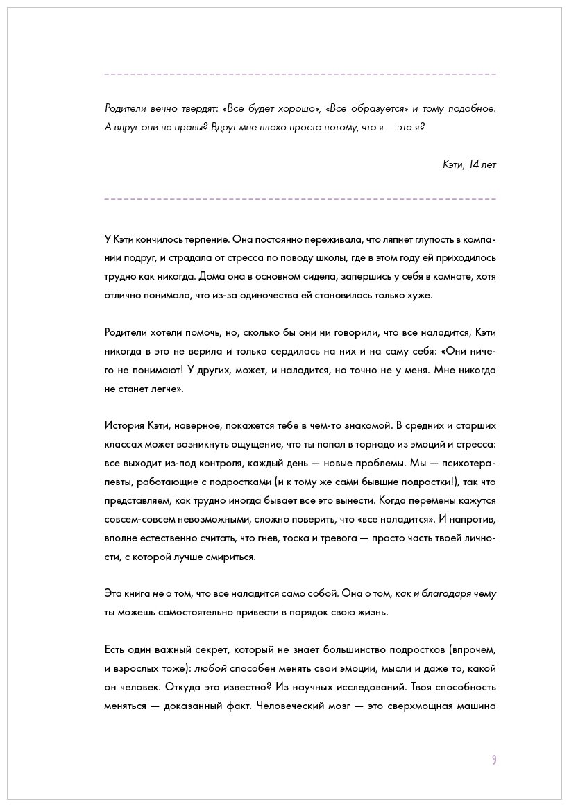Есть один секрет, который не знает большинство подростков, да и взрослые тоже: любой способен менять свои эмоции, мысли и даже то, какой он человек. Откуда это известно? Дело в том, что способность меняться - научно доказанный факт. Человеческий мозг - это сверхмощная машина перемен, а мозг подростков - твой в том числе - еще и один из самых гибких в этом отношении. Ты буквально рожден меняться.