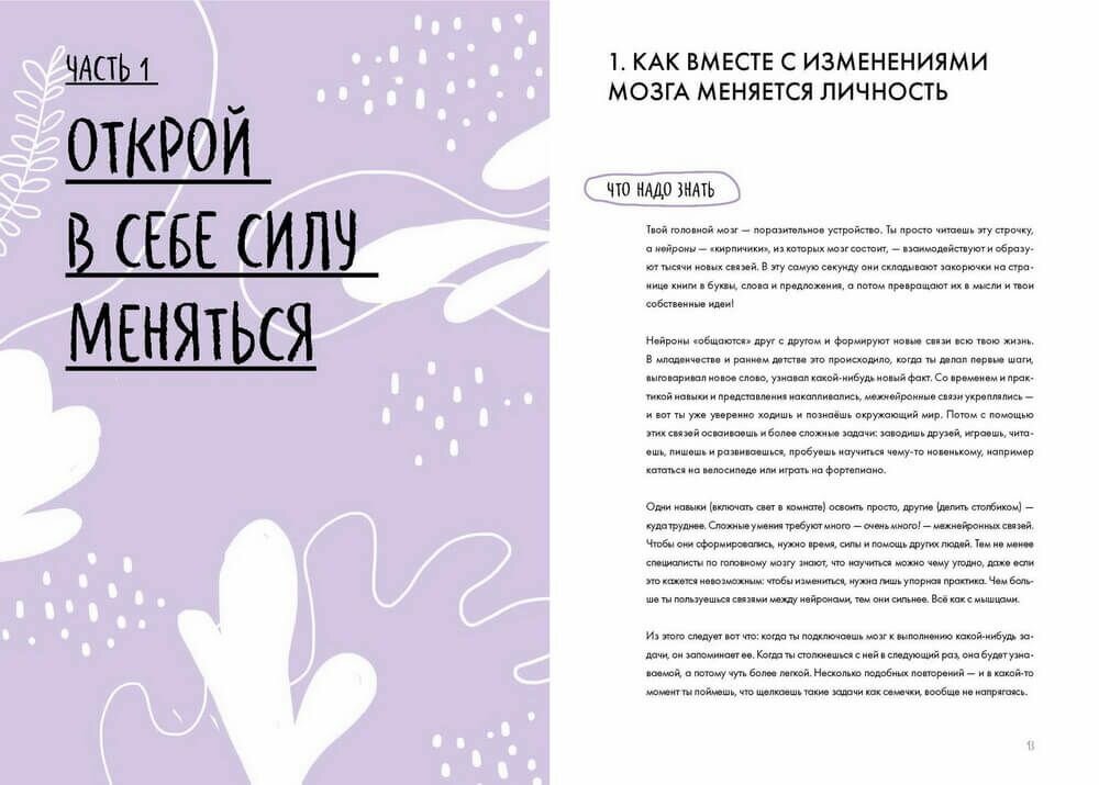 Авторы пишут: "Человеческий мозг - это сверхмощная машина, а мозг подростков ( и твой тоже) необыкновенно гибок. Ты буквально рождён меняться!"