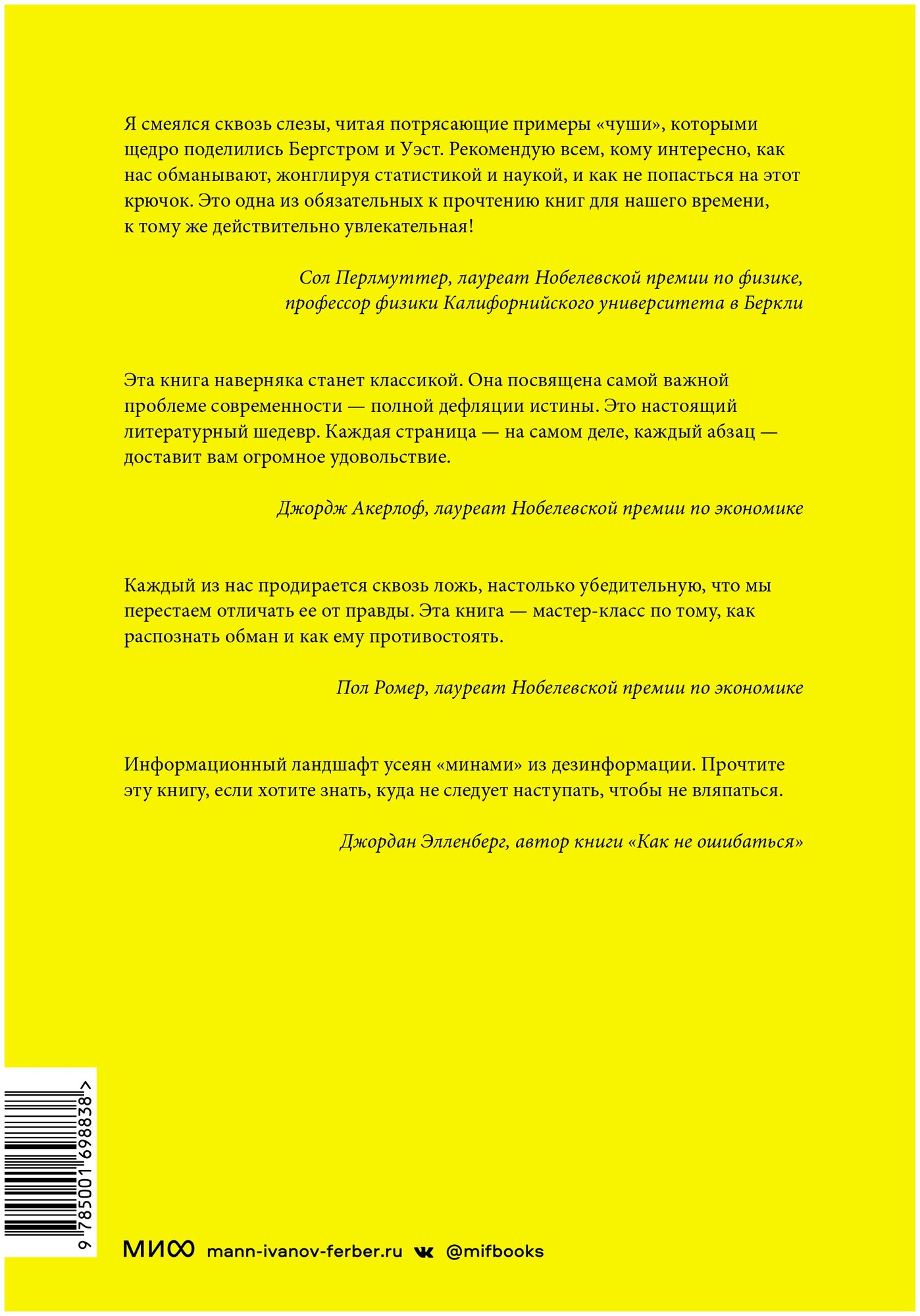 Большинство людеи? полагают, что они довольно хорошо ее распознают. Пожалуи?, они правы, когда речь идет о краснобаи?стве и откровеннои? брехне, то есть о том, что мы бы назвали старомоднои? чушью. Однако поколебать позиции новомоднои? чуши оказывается особенно сложно, потому что мало кто из нас считает себя экспертом настолько, чтобы оспаривать информацию, приведенную в виде цифр и графиков. Именно на это и полагаются брехуны новои? волны. Чтобы дать им отпор, нужно понимать, как и когда подвергать сомнению их заявления.