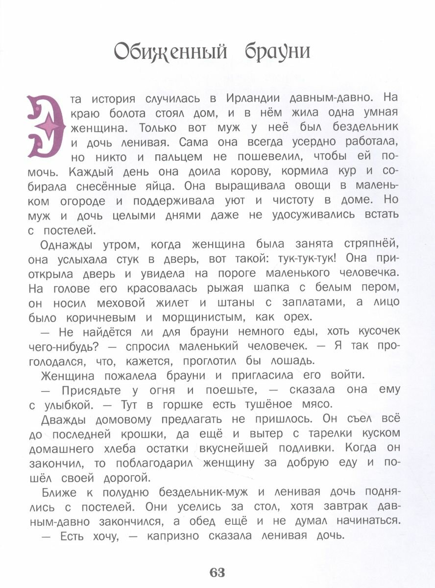 Брауни – это маленький домовой. Однажды он заглянул в гости к женщине и попросил его накормить. Конечно, же хозяйка накормила человечка. А вот её муж и дочь отказались угощать домового, и он обиделся, прогнав их кочергой. Сумеет ли женщина задобрить домового и вернуть членов своей семьи? Как выйдет она из этой ситуации? Может быть, путь к сердцу домового, как и к сердцу любого мужчины, тоже лежит через желудок? Обязательно проверим вместе с героиней сказки.