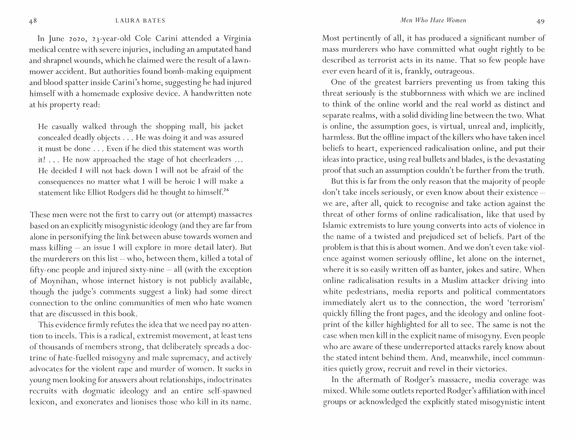 Imagine a world in which a vast network of incels and other misogynists are able to operate, virtually undetected. These extremists commit deliberate terrorist acts against women. Vulnerable teenage boys are groomed and radicalised.