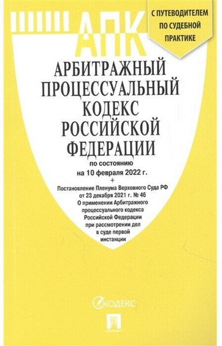Сервис сравнения цен СкидкаГИД предлагает сравнить цены на товар «Книга: Арбитражный процессуальный кодекс РФ по состоянию на 10 02 2022 таблица изменений и путеводитель (Текст принят Государственной Думой, одобрен Советом Федерации); Проспект, 2022»
