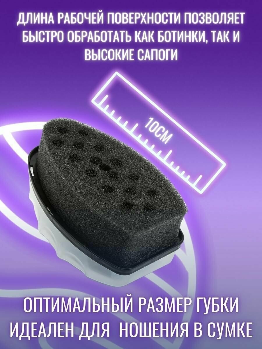 Губка для полировки обуви из гладкой кожи, для экспресс очищения обуви от пыли и легких загрязнений. Длительный эффект блеска, на протяжении всего дня. Черная.