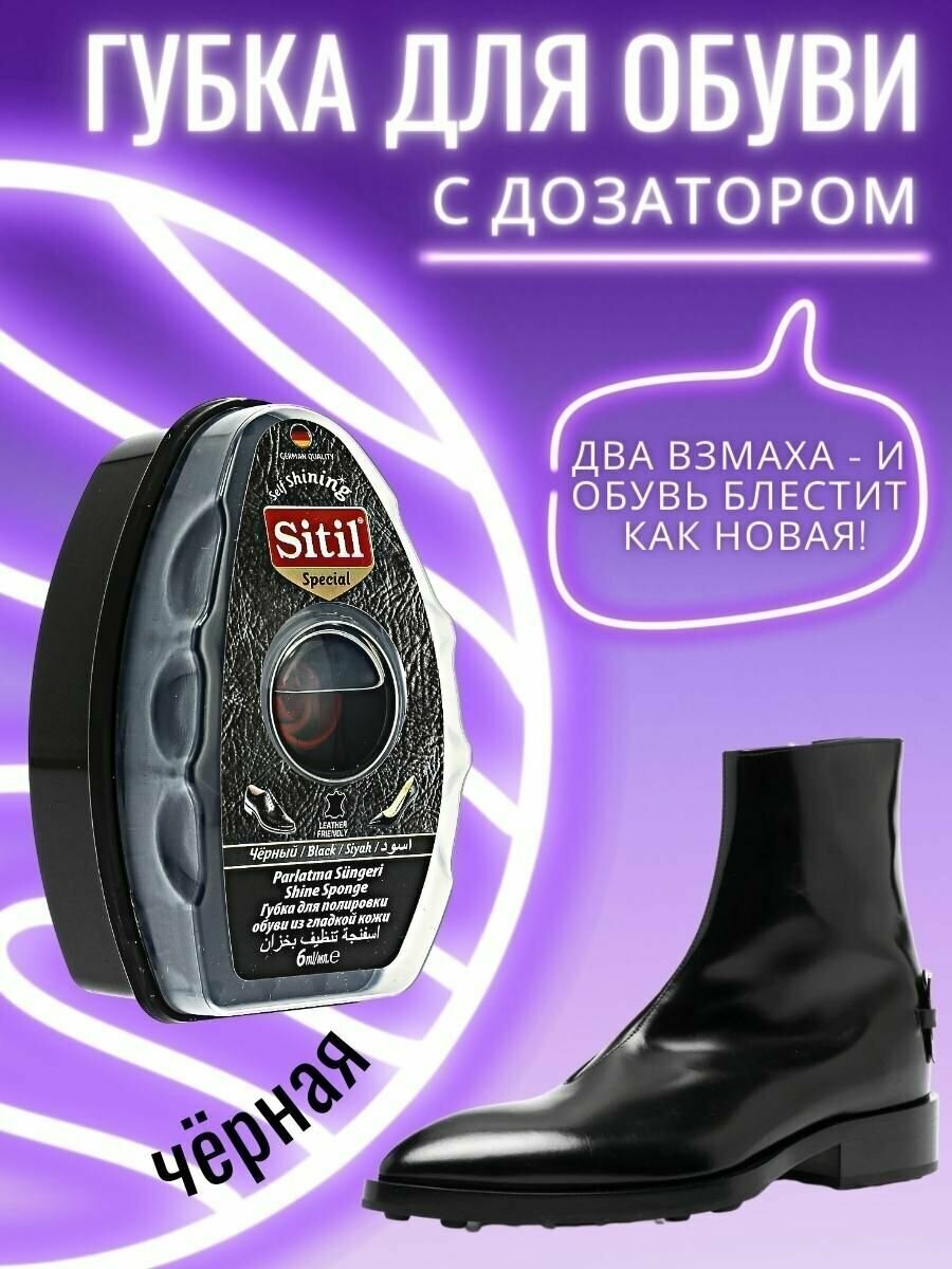 Сервис сравнения цен СкидкаГИД предлагает сравнить цены на товар «Губка для обуви Sitil для полировки обуви из гладкой кожи с дозатором черная»