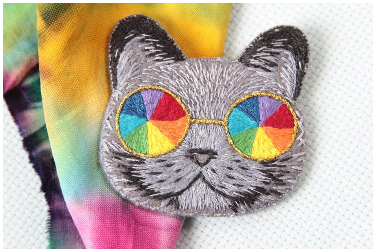 JK-2218 "Брошь. Кот в радужных очках" PANNA (размер: 5,5х5,5 см)