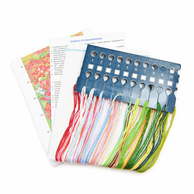 | Комплектация | канва Aida 16 ct белая, хлопковое мулине, игла, цветная символьная схема, органайзер, инструкция |