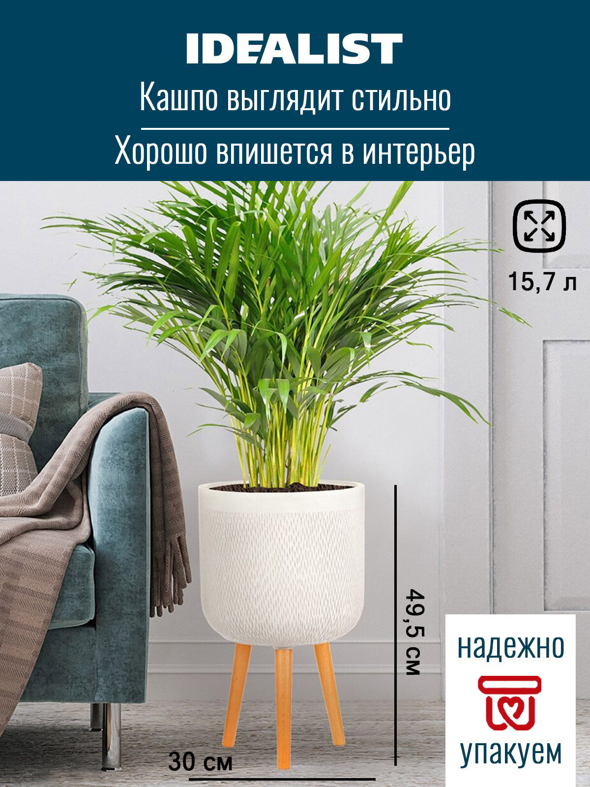 Цветочное кашпо Идеалист WMESHR30-AW 19 л слоновая кость 1 шт. Hoff Лотус Высокое Круглое