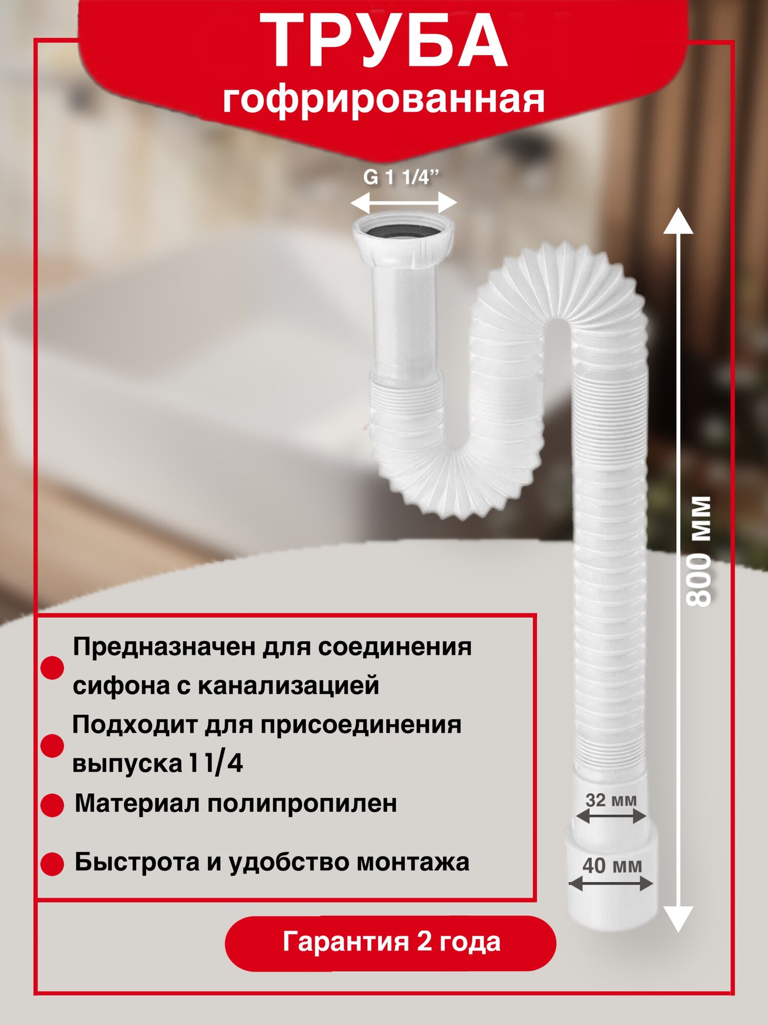 - Гофротруба: 40/50, L800 мм.