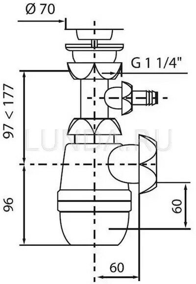 Сифон Wirquin Минор используется в качестве средства защиты от неприятного канализационного запаха, а также звуков льющейся воды в канализационном стояке. Сифон оснащен отводом для стиральной машины и переливом.