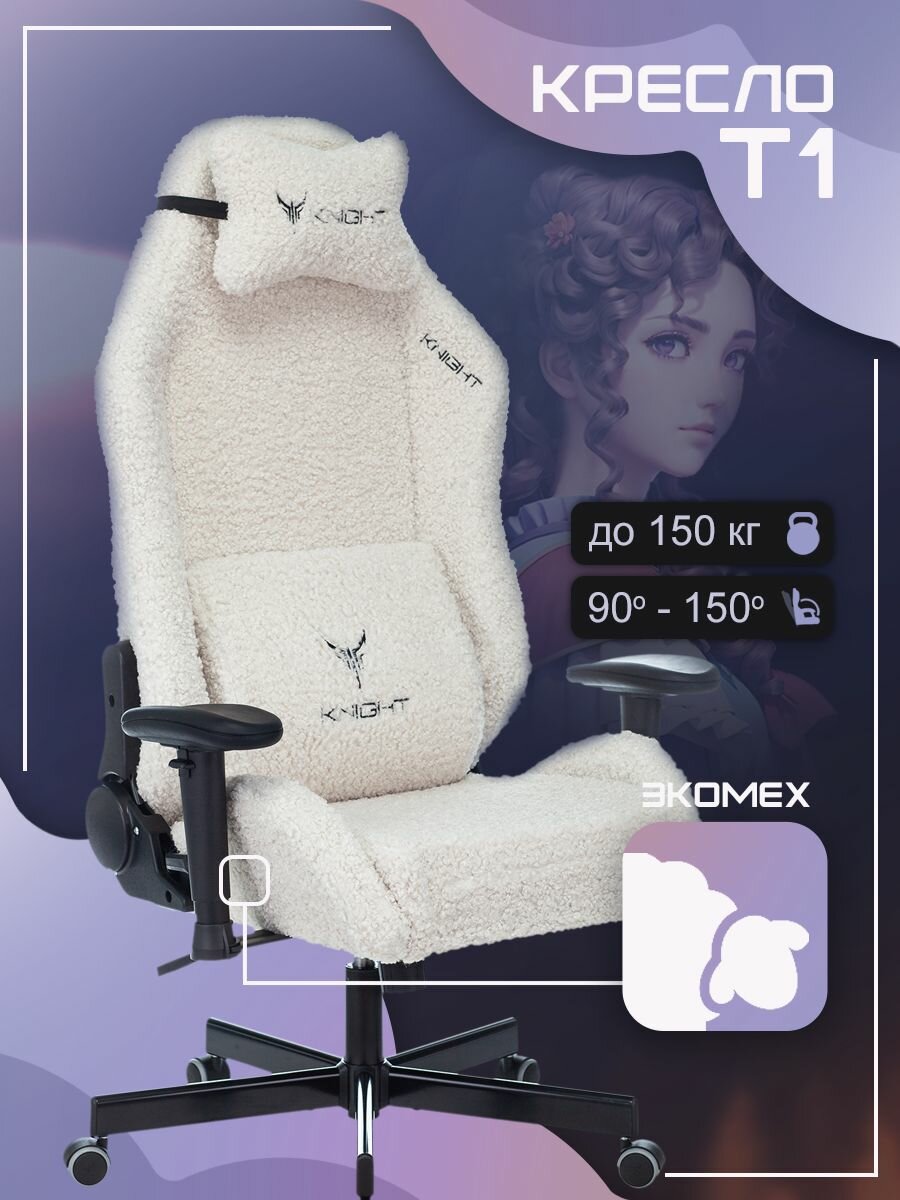Кресло игровое KNIGHT T1 на колесиках экомех молочный [knight ] T1 MILK