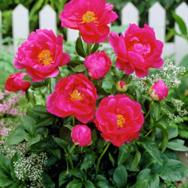 Пионы - травянистые многолетники с мощными мясистыми корнеклубнями. Низкорослые сорта (высотой 35-40 см) благодаря компактности куста, крепким цветоносам и дружному ароматному цветению представляют наибольший интерес для выращивания в горшках. Цветки одиночные, простые, полумахровые, махровые белые, розовые, красные, реже желтые. Листья крупные рассеченные.
