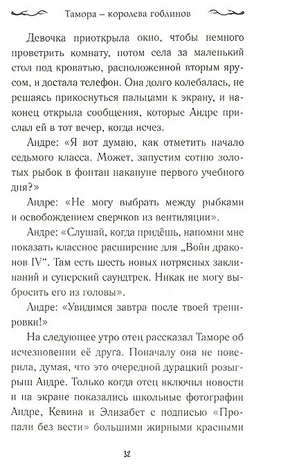 Эта книга - искромётная фэнтези-история в духе "Хроник Нарнии" и "Десятого королевства", приправленная современными гаджетами и уморительными шутками. Эльфы, гоблины и магия перемешались здесь с планшетами и компьютерными играми в потрясающий коктейль по-настоящему захватывающей истории. Живые и искренние герои, образный язык, забавные шутки и захватывающие дух приключения - всё это ждёт вас в компании лихой, отважной и сообразительной Таморы и её друзей - как обыкновенных человеческих, так и крылатых и зеленокожих…