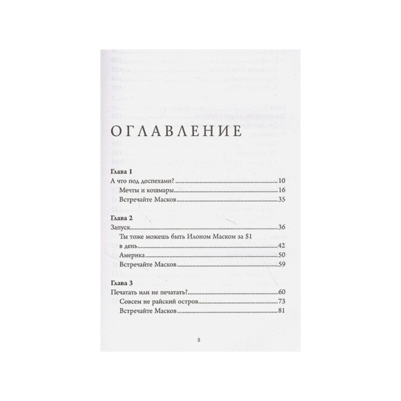 Класс! Очень понравилась книга! Только закончила читать и столько всего хочется сказать. Несколько лет назад я смотрела интервью с Илоном и с тех пор впечатление у меня о нём только положительное. В этой книге собрана информация из разных интервью и упорядочена от его детства до наших дней, от "желтых страниц" до SpaceX, от первой влюблённости до создания школы для своих пятерых детей. Тут перечислены все провалы и неудачи, а также невероятные успехи, в которые ни кто не верил, кроме него. "Разрываясь между SolarCity, Tesla, SpaceX, своим браком и необходимостью растить пятерых детей, Илон был так же, как и в институте, целеустремлен и вдохновлен своей страстью к интернету, электромобилям, космосу и возобновляемой энергией и своим желанием изменить мир." Сколько всего он придумал, изобрел и создал, об этом мало кто знает. Тут все описано емко, интересно с фотографиями. Очень стимулирующая книга, со списком литературы, вдохновившей Илона на такие свершения. Конечно рекомендую!