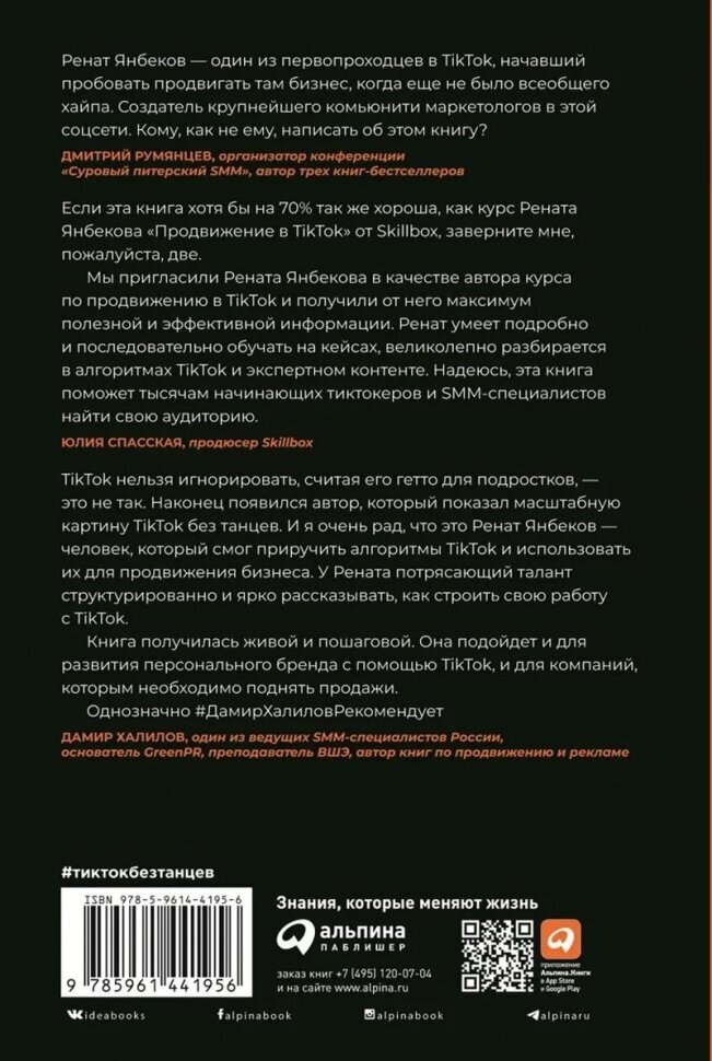Я60 TikTok без танцев: Снимай, продавай, зарабатывай / Ренат Янбеков. — М. : Альпина Паблишер, 2022. — 510 с., ил.
