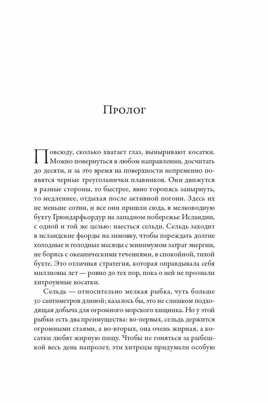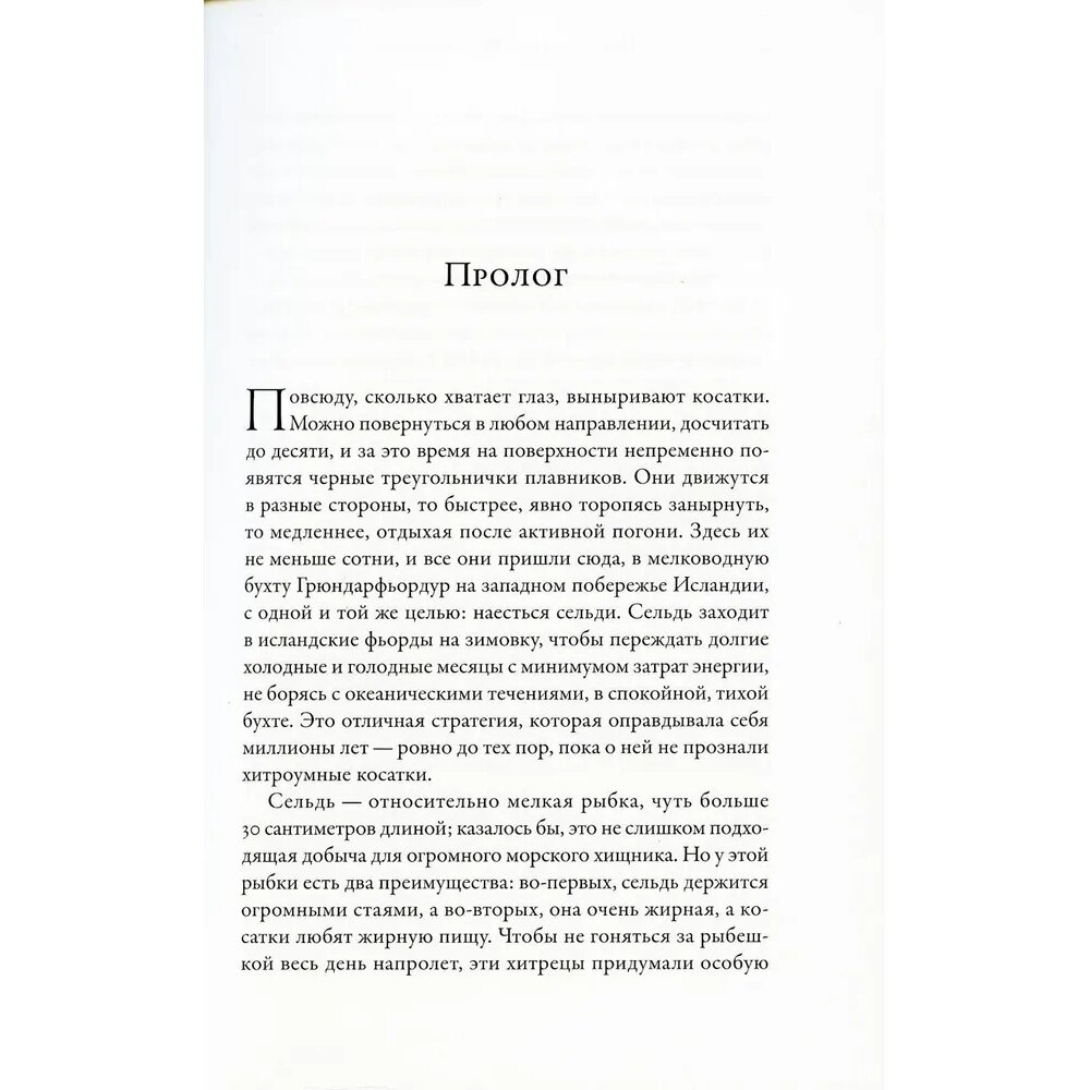 Для меня эта книга открыла удивительный мир косаток. Я не знала, что у них есть язык, что они социальны. Я не знала многого из того, о чем написано легким, теплым, любящим языком исследователя этих прекрасных животных. Книга меня заставила пересмотреть свой взгляд на дельфинарии и использование животных в цирках. Когда я представила, с какими сложностями, жертвами ловят животных, почувствовала, какая это трагедия и для животных, и для экологии и для человека. Рекомендую.