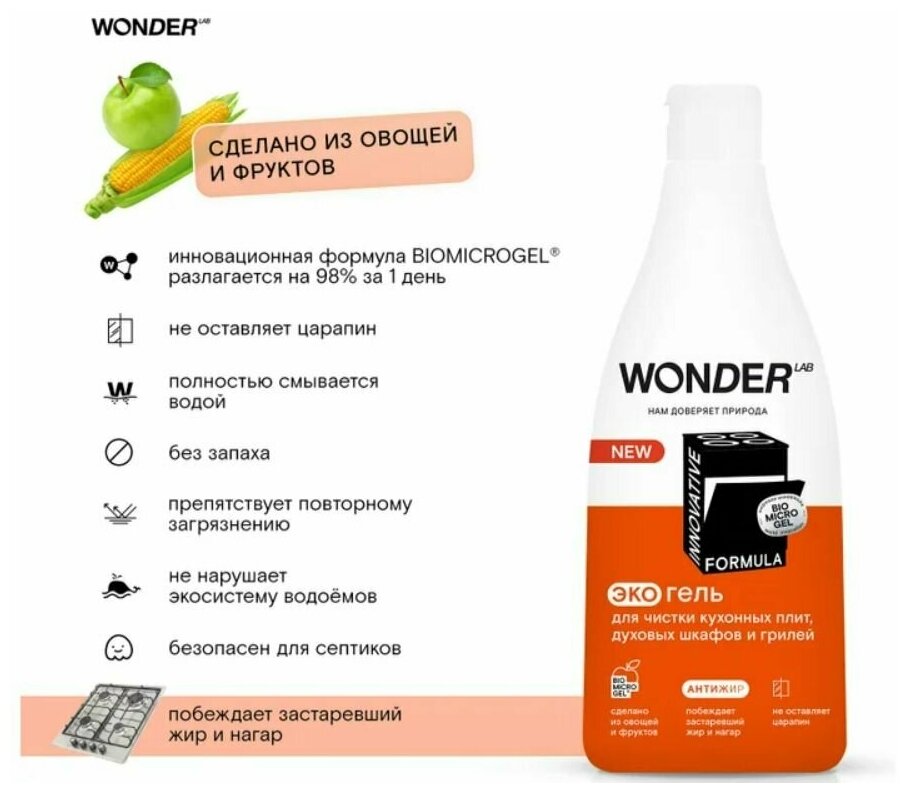 Средство чистящее Wonder Lab Innovative Formula Антижир для плит духовых шкафов и грилей 550мл