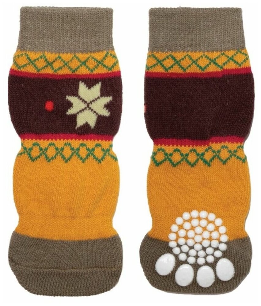 Домашние носочки с изображением снежинки - не только стильный, но и полезный аксессуар для вашего питомца. Такие носочки ограждают интерьер от когтей любимца и, благодаря противоскользящему покрытию, позволяют четвероногому питомцу с комфортом передвигаться по паркету, кафелю и другим скользким покрытиям. Теплые, легкие и функциональные, эти носочки также отлично подойдут для согревания лапок питомца в зимний период, если их одеть под ботинки. Цвет: серый, желтый. Размеры изделия: 25*60мм.