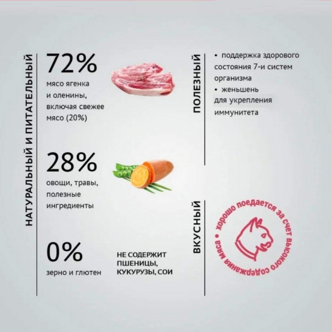 | Вкус корма | ягненок; оленина |