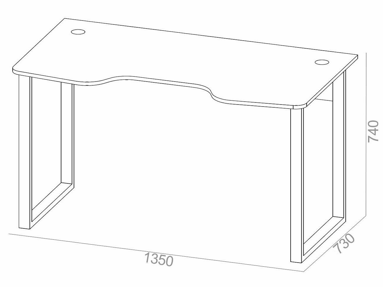 Фигурная форма столешницы позволяет разместить монитор компьютера, клавиатуру и мышь.