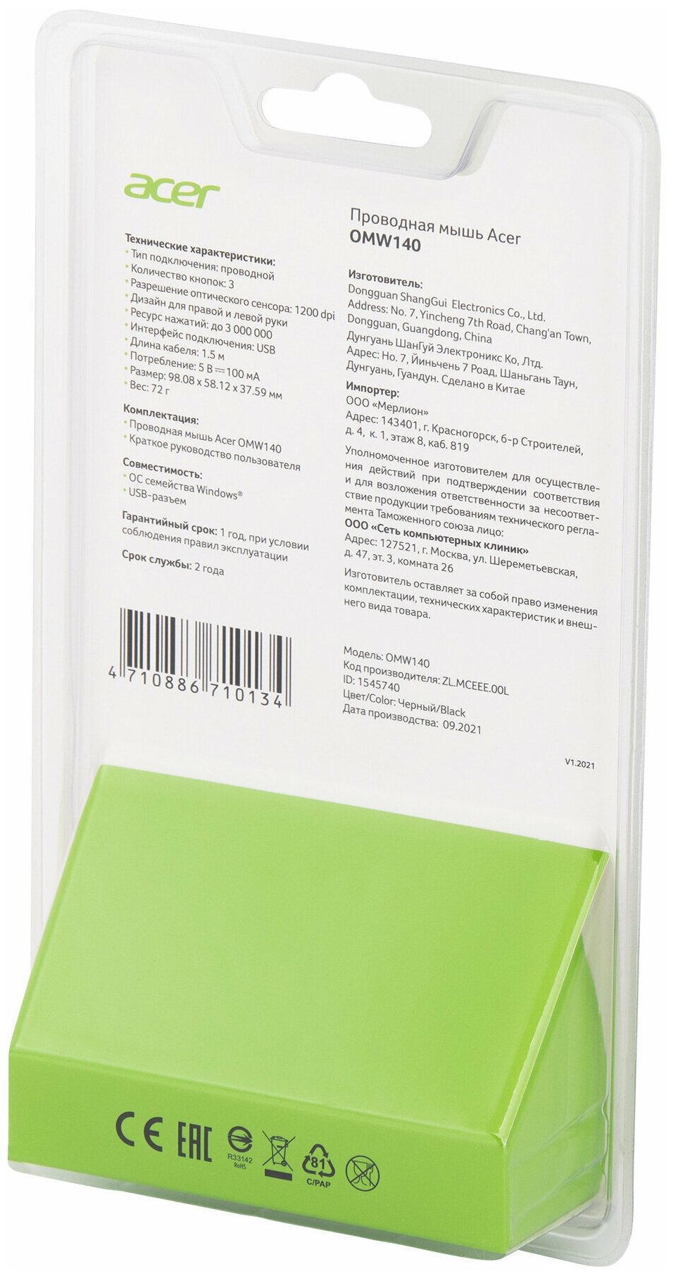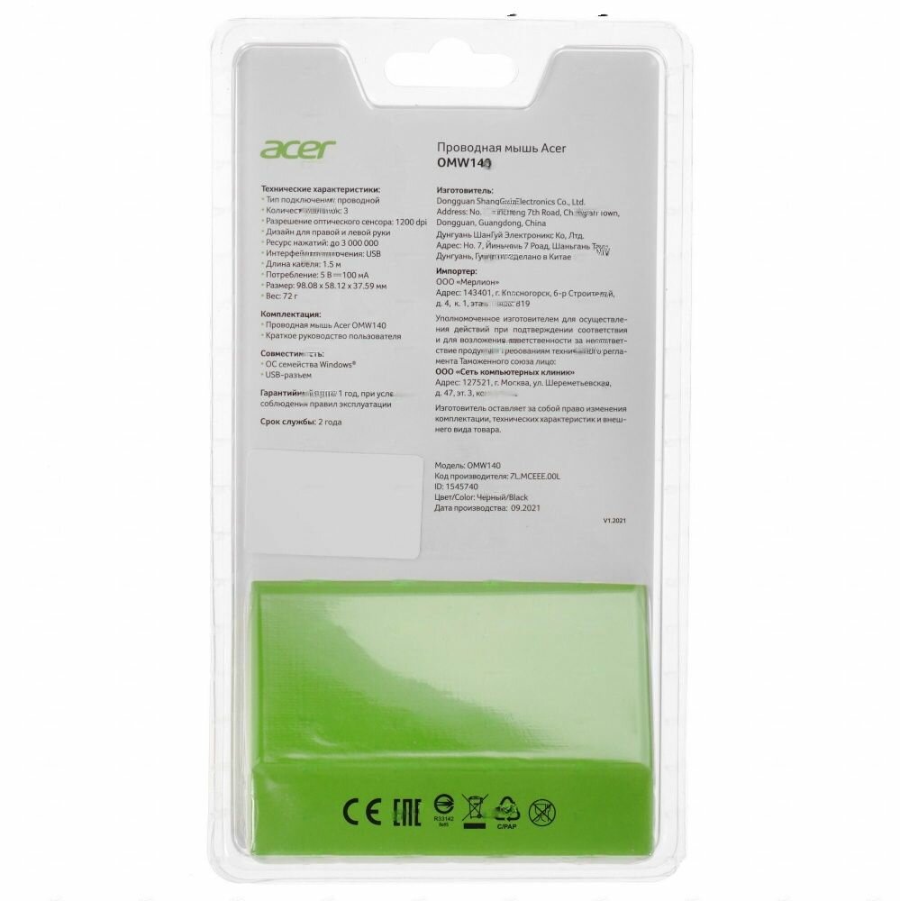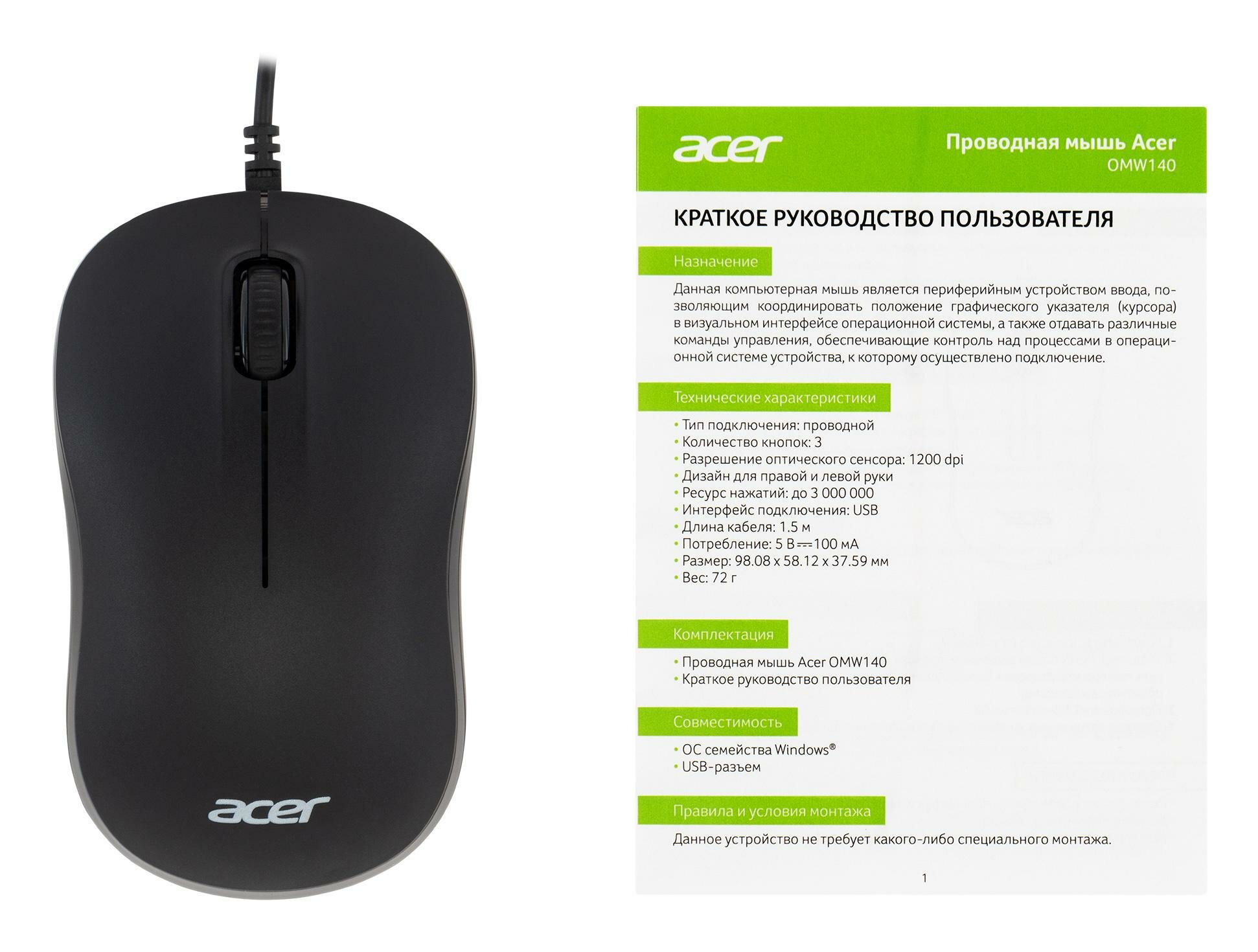 Мышь Acer OMW140 оптическая проводная USB черный [zl.mceee.00l]