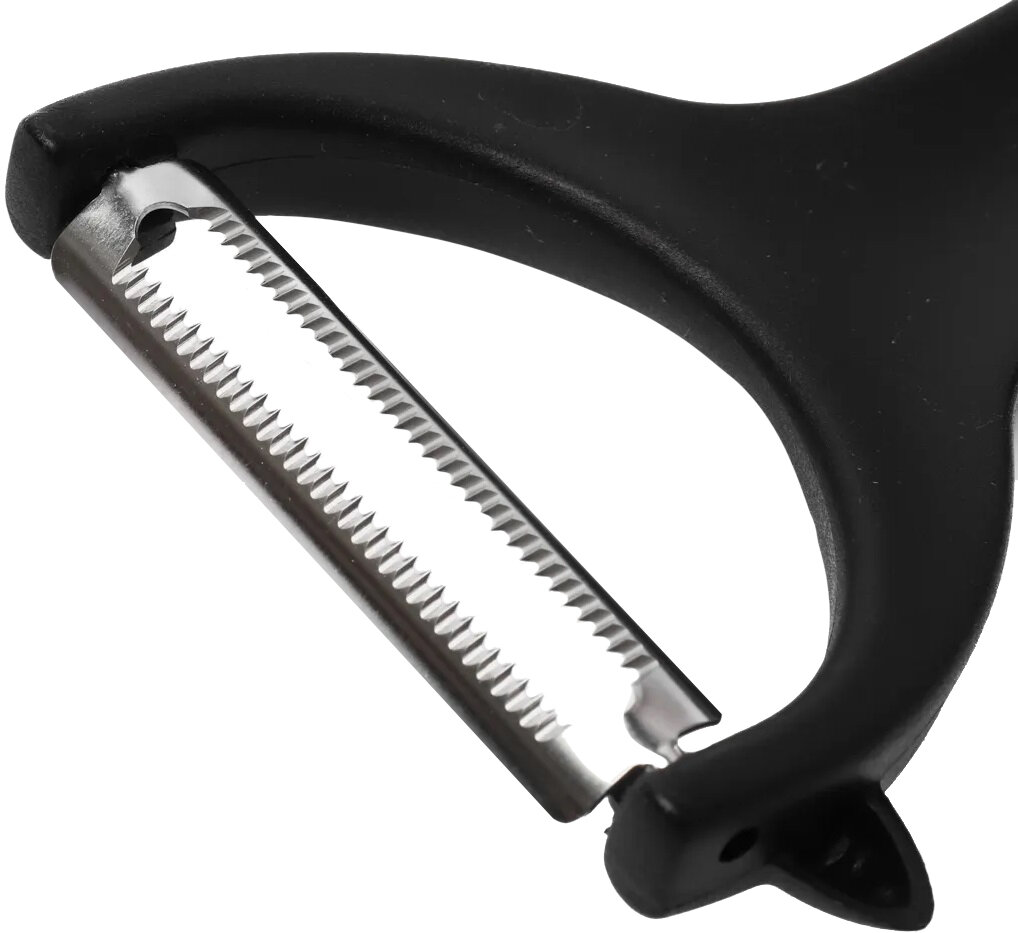 Очистка овощей или фруктов с помощью обычного ножа требует максимальной внимательности и осторожности, поскольку при его соскальзывании легко получить травму. Благодаря особой конструкции лезвия, которое рассчитано на снятие тонких слоев кожуры, овощечисткой практически невозможно порезаться. А эргономичная форма ручки способствует удобному хвату.