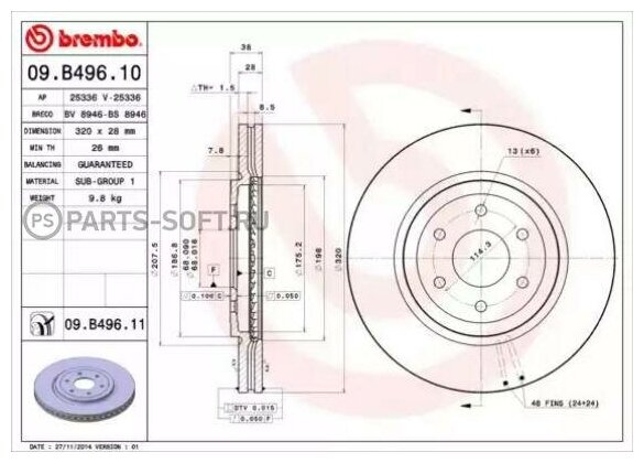Сервис сравнения цен СкидкаГИД предлагает сравнить цены на товар «Тормозной диск BREMBO передний 09.B496.10»