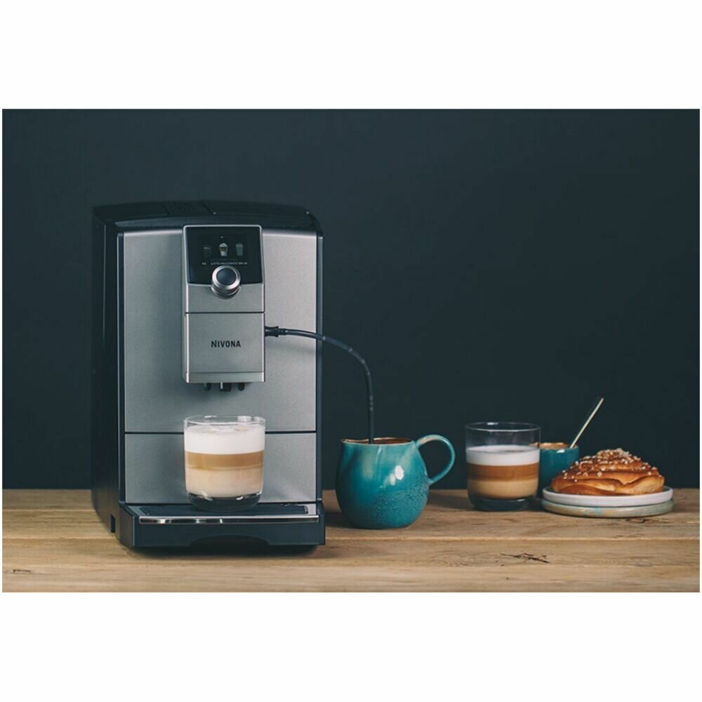 Седьмая серия кофемашин NIVONA, как и прежде, впечатляет своими функциями и особенностями, которые способны удовлетворить как истинных ценителей, так и тех, кто только начинает приобщаться к культуре приготовления кофе.При создании моделей данной серии особенное внимание уделялось технологическим решениям, которые обеспечили непревзойденный вкус и аромат приготавливаемых напитков, недостижимый для большинства аналогичных кофемашин. Система сбалансированного аромата Aroma Balance System с тремя ароматическими профилями позволяет достичь максимального аромата, точно сбалансированной экстракции и раскрыть вкус любого кофейного зерна.С оптимизированной встроенной кофемолкой с жерновами из закалённой стали, можно подобрать оптимальную степень помола для зерна любой степени обжарки.А дополнительная звукоизоляция обеспечивает чрезвычайно низкий уровень шума. Ваши любимые кофейные молочные напитки - капучино, латте макиато, готовятся нажатием одной кнопки, а новая функция Cappuccino-Connaisseur позволяет задать любую очередность подачи молока и кофе для удовлетворения самых разнообразных вкусовых предпочтений. Регулировка параметров напитка непосредственно во время приготовления и функция редактирования встроенных рецептов помогут создать свой идеальный вкус кофе, который нравится именно вам. А с функцией «Мой кофе» можно сохранить рецепты любимых напитков для всех членов семьи.Новая система управления одной кнопкой и усовершенствованная структура меню делают управление более удобным и интуитивно понятным. Управление со смартфона, через мобильное приложение «Nivona App», позволит готовить, просматривать и сохранять все настройки и рецепты на экране смартфона, не вставая с дивана, а функция статистики и мониторинга сообщит о необходимости технического обслуживания кофемашины. Стильный современный дизайн кофемашины с различными цветовыми решениями и подсветкой отлично впишется и украсит любой интерьер. Особенное внимание инженеры компании Nivona уделили простоте и удобству обслуживания кофемашины. Встроенные программы очистки и удобные подсказки на дисплее делают процесс обслуживания простым и интуитивно понятным.