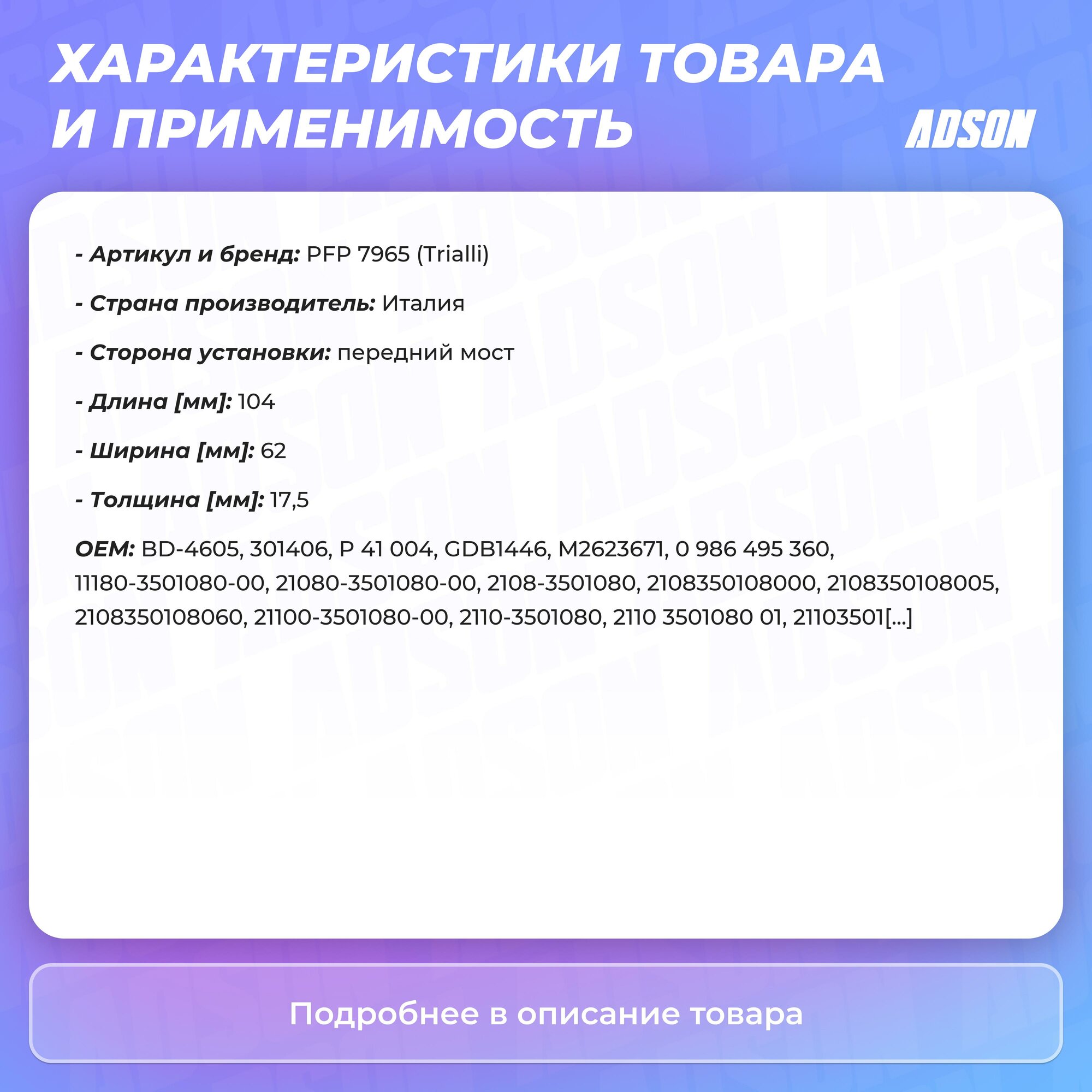 Сервис сравнения цен СкидкаГИД предлагает сравнить цены на товар «Тормозные колодки TRIALLI дисковые передние PFP 7965»