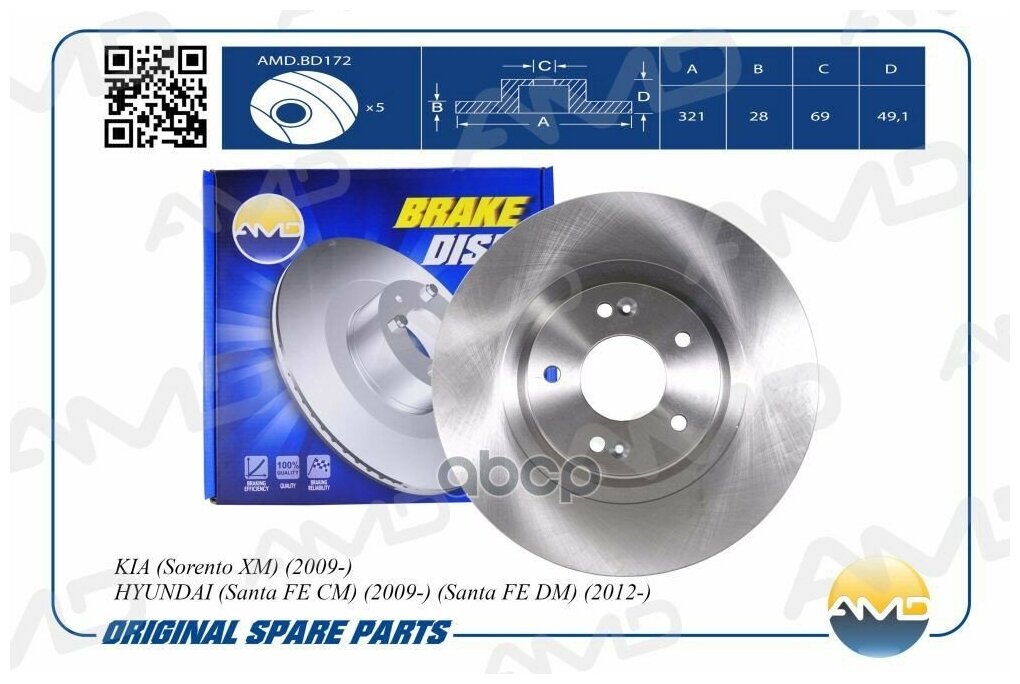 Диск тормозной AMD AMD. BD172 производится в Южной Корее, на специализированном предприятии, работающем по технологии полного цикла. Тормозные диски обладают эффективностью и надежностью торможения, а также 100% качеством материалов.