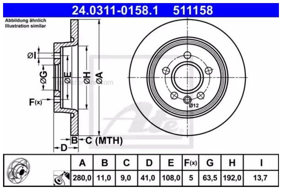 Тормозной диск ATE задний 24.0311-0158.1